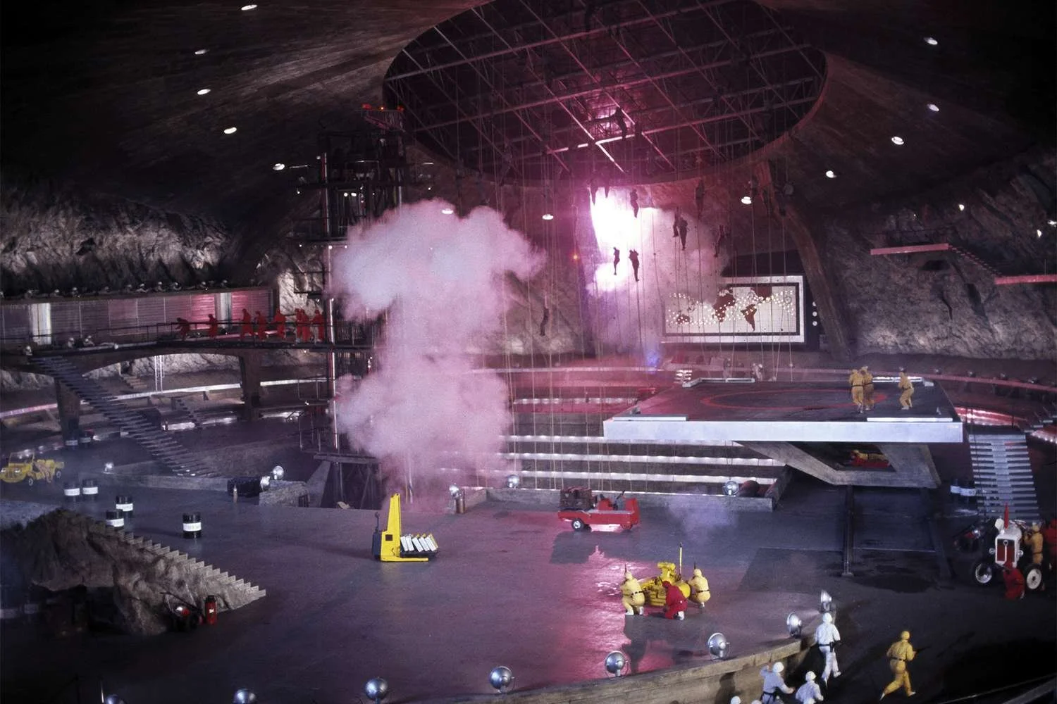Bond discovers Blofeld’s secret volcano lair while flying around in an autogyro, which looks like the skeleton of an unfinished helicopter. He wasn’t sure until four attack choppers came after him, confirming there was definitely some supervillain nonsense going on. James goes undercover to train with ninjas and go through an unfortunate montage where makeup and eye prosthetics are applied to make Mr. Bond “look Japanese.” He’s even assigned a wife to complete the cover identity. While Kissy Suzuki proves to be a valuable addition to the team during the final battle, I’m puzzled as to why all of this subterfuge was necessary. James doesn’t use his new Japanese identity to walk into any place that was previously inaccessible to him as a white man. James, Kissy, and a small army of ninjas mount an all-out assault on the volcano lair, where he actually utilizes a different disguise—a spacesuit that completely concealed his face. 007 saves the day by preventing another spaceship from being swallowed, and self-destructs Blofeld’s imperial star destroyer before doing the same for his villainous volcano lair.